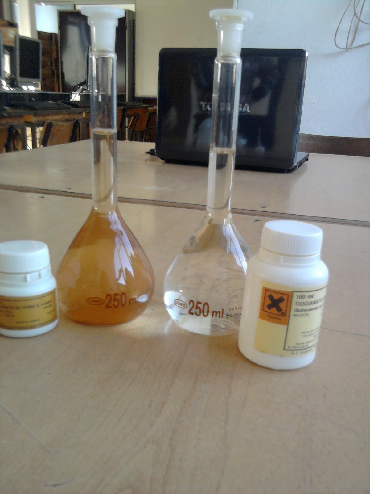 O [FeSCN]2+ pode obter-se por reacção entre uma solução aquosa de FeCl3 (cor castanha) e uma solução aquosa de KSCN (incolor). Estas soluções são fáceis de preparar, todavia, devem ser sempre diluídas, porquanto o FeCl3 e o KSCN são ambos nocivos, especialmente se ingeridos.